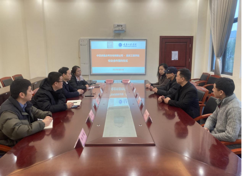 本网讯(文/图 教务处 杨彦楠)为进一步深化校企合作,培养多元应用型人才,提升学生文化艺术修养,1月17日,我校与伏羲琴院在行政楼207会议室签署了校企合作协议,标志着双方在教育领域的深度合作正式开启。伏羲琴院院长金智泉,重庆工程学院党委副书记、常务副校长张业平,副校长王建东、双方相关领导及工作人员出席签约仪式。仪式由教务处(校企合作办公室)副处长许欢欢主持。