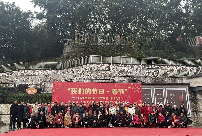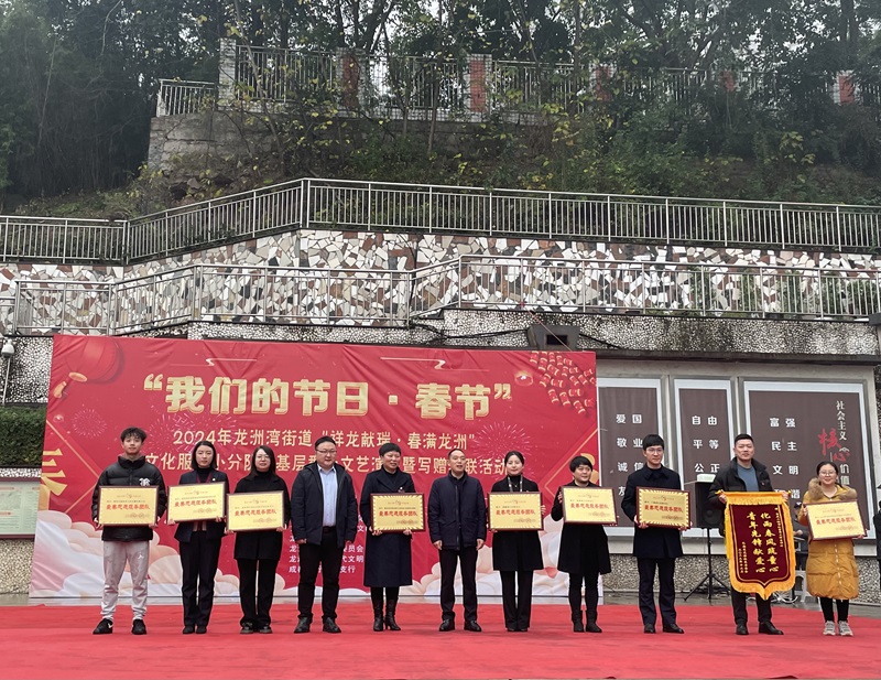 本网讯(文/图 管理学院 荣菁菁)一面锦旗,一份肯定,一句感谢,一种责任。1月18日,管理学院受邀参加重庆市巴南区龙洲湾街道党工委、办事处举办的“祥龙献瑞·春满龙洲”新春活动,青年先锋宣讲团被评为最美志愿服务团队并被授予锦旗。学院副院长徐先航、专职组织员荣菁菁、分团委书记王燕楠参与活动。