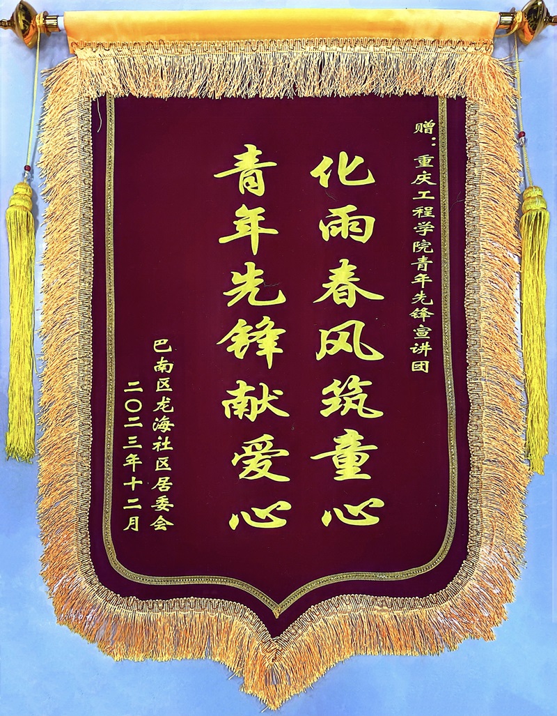 “你们暖心的志愿服务,让我们龙海社区的居民朋友、少年儿童感受到了来自青年力量的关心与爱护。”重庆市巴南区龙洲湾街道党工委书记唐家伟表达了对志愿服务团队的感谢并授予锦旗。“化雨春风筑童心,青年先锋献爱心”是主办单位对青年先锋宣讲团的充分肯定,更承载着他们对志愿者们的真挚感谢。