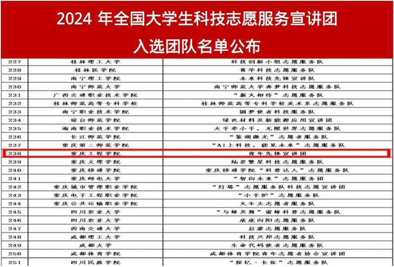 为大力弘扬新时代科学家精神和科技志愿服务精神,进一步激发广大青年学生创新争先的热情,引导青年学生能创新、敢创新,青年先锋宣讲团响应号召,积极与重庆市巴南区南泉地震科普基地沟通对接、联合申报,并成功入选2024年全国大学生科技志愿服务宣讲团。