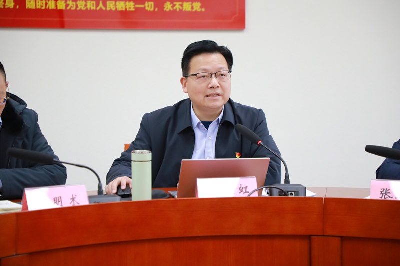 本网讯(文/图 党委宣传部)2月29日,学校党委理论学习中心组(扩大)集中学习会议召开,双桥校区线上参会。会议由党委书记陈长虹主持。