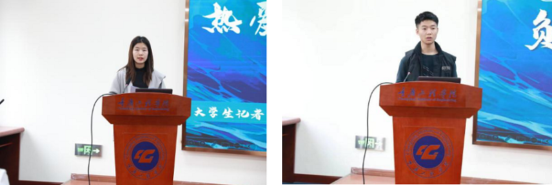 接着,由大学生记者团和大学生新媒体中心负责人进行团队工作总结。大学生记者团负责人樊玉婷首先肯定了团队在2023年所取得的成绩,同时也指出了一些不足之处,她提出记者团成员要继续提升专业素养,提升工作质量,克服怠慢情绪。大学生新媒体中心负责人杜林首先对过去一年的工作进行了总结,并提出了个人希望。他说,在今后的工作中要提高热点敏锐度,不断创新,挑战自我。