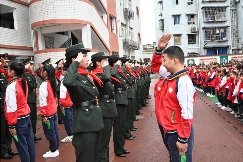 本网讯(文/图 武装部 朱文韬)为弘扬爱国主义精神,牢铸国防教育,近日,党委武装部组织校国旗护卫队赴巴南区莲花小学为同学们带来了一次别出新意的国防教育活动。