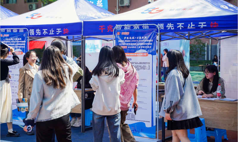 在学校彭氏民居球场,与签约仪式同步进行的还有南昌市(西湖区)2023~2024年度吸引10万名大学生和技能人才来昌创业就业“百场校招”活动。同学们与用人单位人员就招聘条件、岗位职责、发展前景、薪资待遇等深入交流。据统计,此次双选会共有39家企业参会,提供了涵盖计算机、软件、电子信息等多个领域的1650个就业岗位,吸引了400余名求职者前来参与,现场氛围热烈而有序。