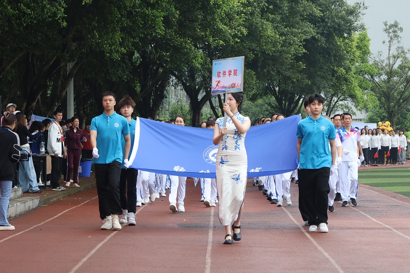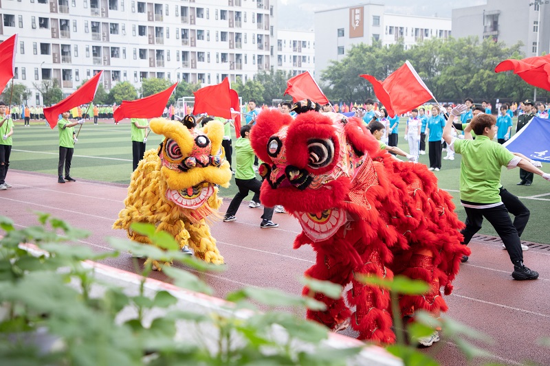 恰同学少年,风华正茂。伴随着激动人心的《运动员进行曲》,正式拉开了开幕式的第一项——各方阵入场。同学们踏着激扬的旋律,满怀激情。首先迈着整齐的步伐入场的是国旗方阵,紧接着校旗、运动会会旗和校风、校训、学风方阵入场,他们步履铿锵,英姿飒爽,展示着重工学子团结自强、拼搏向上的精神风貌,紧接着是彩旗方阵和花环方阵入场。各学院方阵各展特色,舞狮表演雄浑有力,直播助农创意新颖,汉服走秀韵味十足……为全校师生带来了一场视觉盛宴。