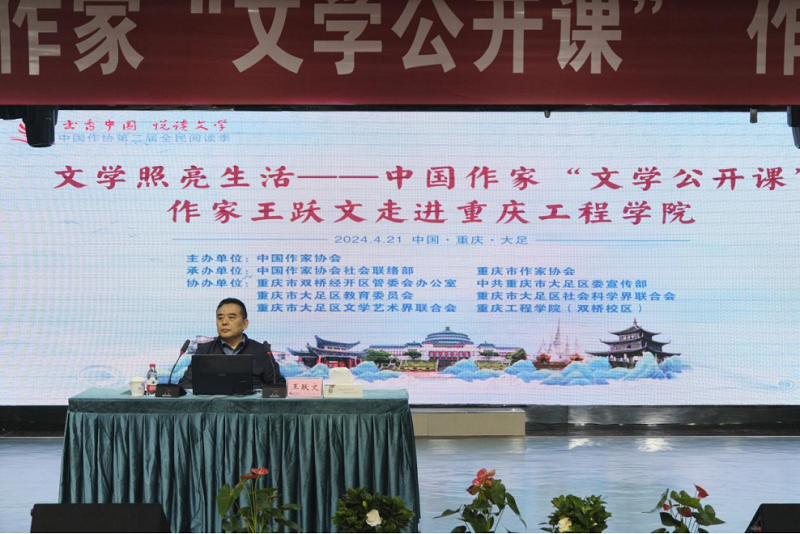 本网讯(文/双桥校区 刘加 图/双桥校区 吕颖莉)4月21日下午,“书香中国·悦读文学” 中国作协第二届全民阅读季中国作家“文学公开课”在重庆工程学院双桥校区隆重举行。中国作协主席团委员、湖南省作协原主席,鲁迅文学奖获得者-王跃文走进重庆工程学院双桥校区,为校区师生带来了一场别开生面的文学盛宴。