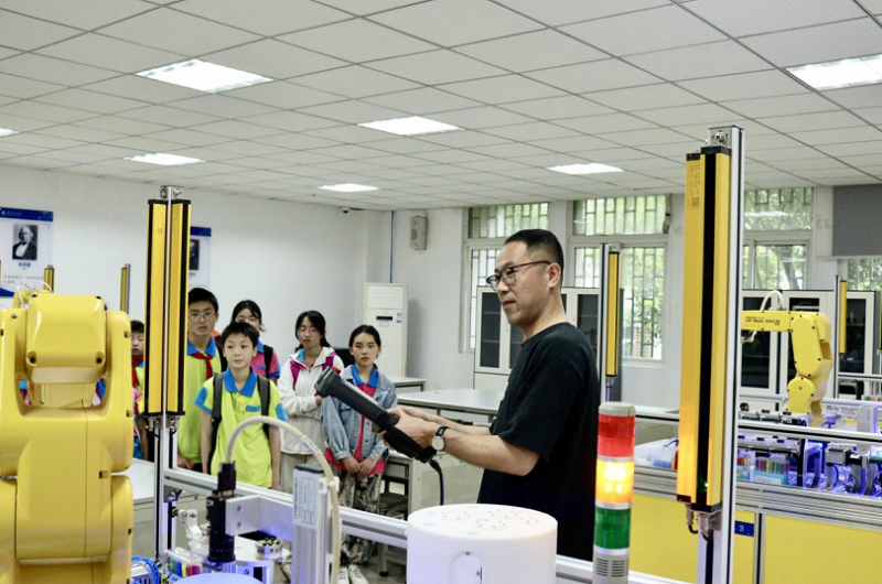 南温泉小学的学生们在进入学校后,在国旗护卫队队员的带领下前往了第三教学楼与第四教学楼进行参观。小学生们整齐有序参观了实训室和智慧教室等,并了解到了各种科技设备的原理。在参观实训室时,自动化的机器人吸引了学生们的注意,小学生代表表示,在未来自己会勤加学习,努力考上心仪的大学,并在大学中完成自己的今天的理想。