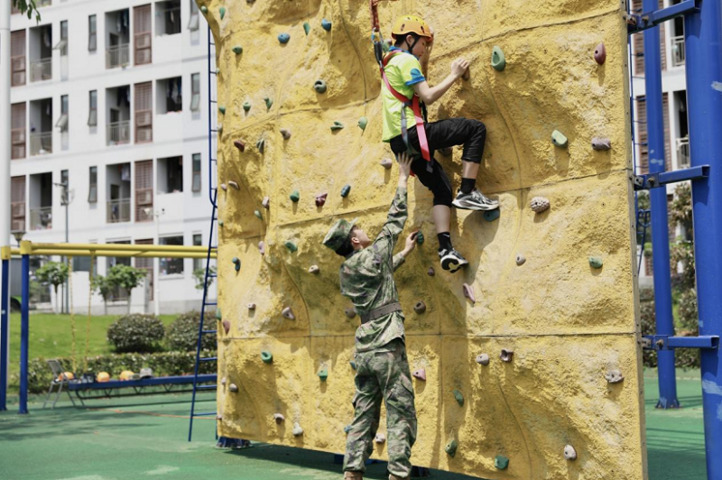 在学校国旗护卫队队员的引领下,小学生们井然有序地抵达了拓展训练基地。拓展训练基地不仅配备了齐全的拓展训练设备,还包括了高空作业的训练设施。随后,小学生们尝试攀岩项目,在此期间,国旗护卫队队员们细心地为小学生们解释高空作业的相关内容,并讲解了攀爬时所需要注意的安全问题。在活动结束后,小学生们争相表示,他们将要更加勤奋地学习,以便将来能为国家的科技和国防建设添砖加瓦。