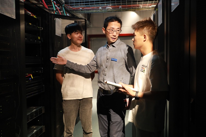 图/罗宇飞在研究所与同学们开会交流