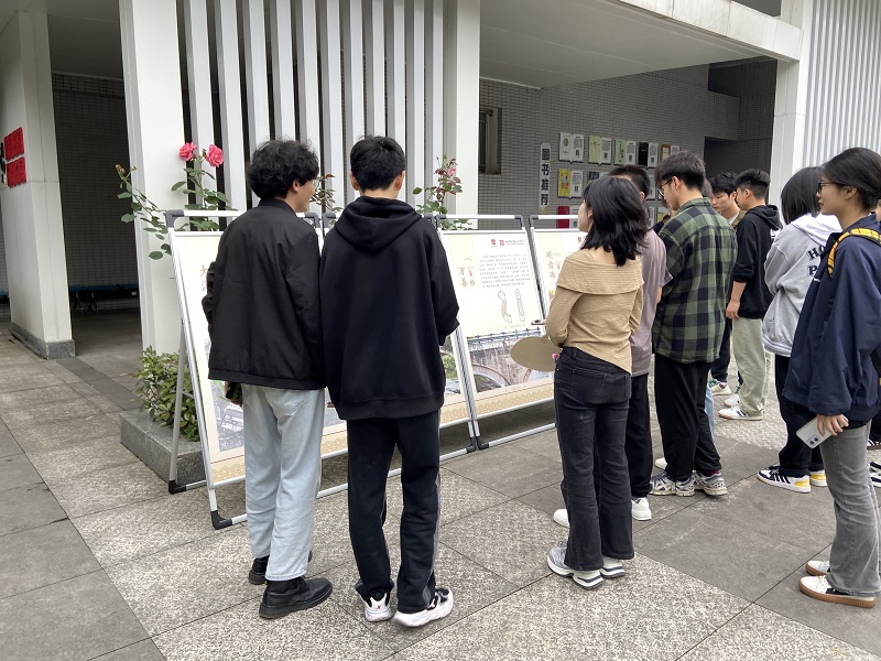 图书馆联合中科教育举办的思政专家讲座展——思政知识“码”上学、联合重庆巴人博物馆举办的巴文化系列活动——“石桥烟雨”大溪河古桥梁展也在南泉校区图书馆总馆小广场同时举行,也受到了读者的广泛关注,师生扫码听讲、驻足观看,营造了良好的学习氛围。