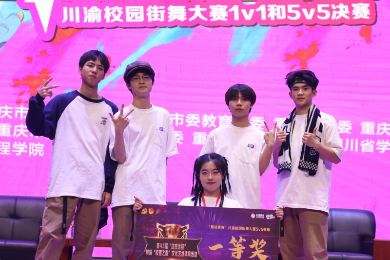 本次大赛由重庆市委宣传部、重庆市委教育工委、重庆市教委、重庆市体育局、团重庆市委、团四川省委、重庆市学联、四川省学联联合主办,重庆工程学院承办。自3月启动以来,川渝高校8万余名街舞爱好者积极参与,历经初赛、复赛层层选拔,来自重庆大学、电子科技大学等高校的8名选手、7支队伍分别入围1V1和5V5赛道决赛,我校High Five团队披荆斩棘进入决赛。