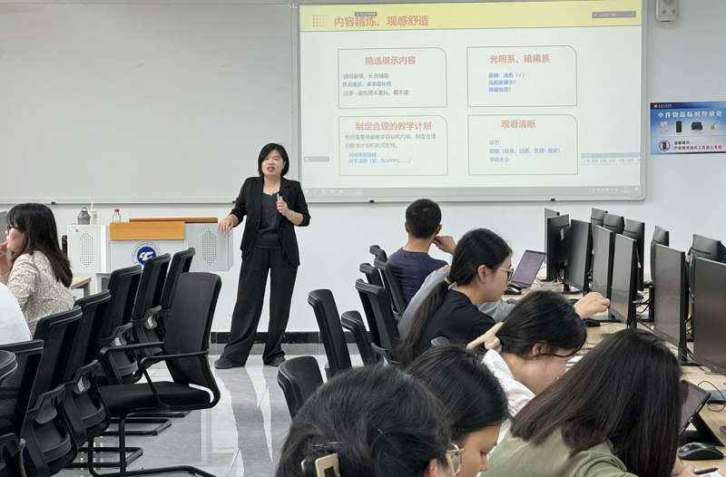 本网讯(文/图 教师发展中心 张静)为帮助青年教师进一步适应智慧教育背景下新的教学模式,提升教师智慧教学应用能力,教师发展中心于近日开展了课件设计与制作工作坊,由新媒体电商学院教授张小玲担任主讲教师,30余名教师参与。