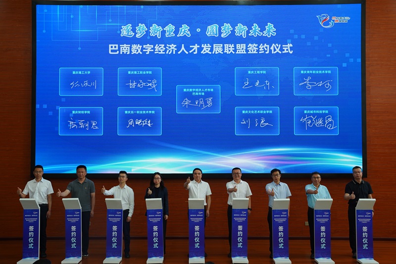 活动现场,巴南区人力社保局还与重庆工程学院、重庆理工大学等8所在区高校举行了巴南数字经济校企联盟签约仪式。