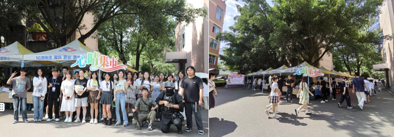 今年是我校的第十届大学生心理健康节,本届以“关爱自我 共享成长”为主题,前期在两校区同步举办了系列活动,包括“三有一约”宿舍心理之家建设成果大赛、“重工之美”主题摄影比赛、系列主题沙龙讲座等,形式多样,内容丰富,紧跟大学生的关注热点。5月22日下午,两校区还同步举办了第十届大学生心理健康文化节现场体验活动。现场设置了多种多样的体验活动,包括“心晴集市”“时光慢递——写信给一年后的自己”、现场书写“热爱生活的理由”“心光闪闪”朋友圈打卡拍照纪念、“烦恼快走开”情绪保龄球、写给我的三行情诗等。主题设计与大学生情绪管理、自我认识、压力管理等紧密关联。其中“心晴集市”从德智体美劳多方面搭建了一个展示朋辈积极生活的平台,旨在打造一场集兴趣展示、DIY手工艺品、二手学习生活用品交易于一体的综合性集市。共分为四大类集市,包括创意集市、创业集市、诚信集市和跳蚤市场,不仅为热爱尝试的同学们提供了展示机会,更为人们展示了当下年轻人积极的生活乐趣。