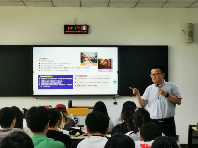 5月23日下午,王建东走进课堂开启了一堂精彩的“形势与政策”课。他以提问开场,引出中国式现代化的主题,分析了现代、现代化、中国式现代化的逻辑理路,讲述了中国式现代化的历史进程和特点。他强调,党的二十大报告明确提出要以中国式现代化全面推进中华民族伟大复兴,认识和把握现代化的丰富内涵、本质要求和实现路径,对于党团结带领全国各族人民全面建成社会主义现代化强国、实现第二个百年奋斗目标,以中国式现代化全面推进中华民族伟大复兴具有重大意义。