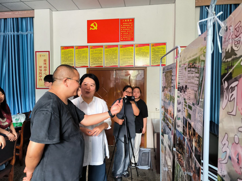 最后,石龙镇规建办主任刘劲松对同学们的作品进行了点评,肯定了同学们的创作思路和创新理念,也指出了作品在细节上结合村镇实际不足等问题。他希望同学们在以后的学习及创作中能创新思维,提升作品的接地性、群众性,从而更好为乡村振兴服务。