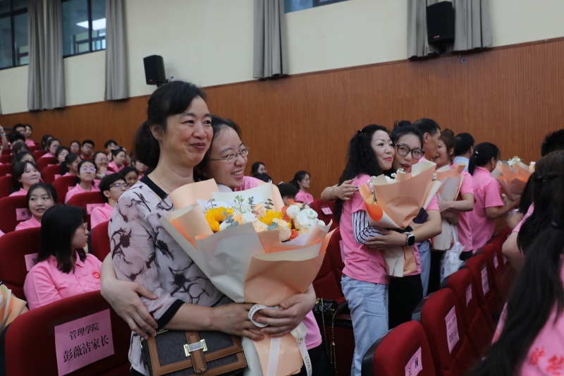 活动伊始,一首《以爱之名 感恩父母》深情的朗诵节目让现场观众感受到了浓浓的亲情。参与活动的学生伴着音乐和朗诵声步入会场,满怀感恩之情,向自己的父母献上美丽的花束。