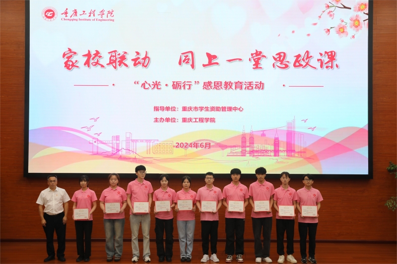 本网讯(文/党委宣传部 图/大学生记者团)6月2日,由重庆市学生资助管理中心指导,重庆工程学院主办的“家校联动 同上一堂思政课”“心光·砺行”感恩教育活动在重庆工程学院成功举行,40余名家长受邀走进校园,家校携手开展感恩教育活动。重庆市学生资助管理中心主任黄传军、科长付桂玲;重庆工程学院党委书记陈长虹,党委副书记、常务副校长张业平,副校长谭明术、王琼花、王建东出席,相关职能部门及二级学院负责人参加,300余名青年大学生现场聆听,反响热烈。
