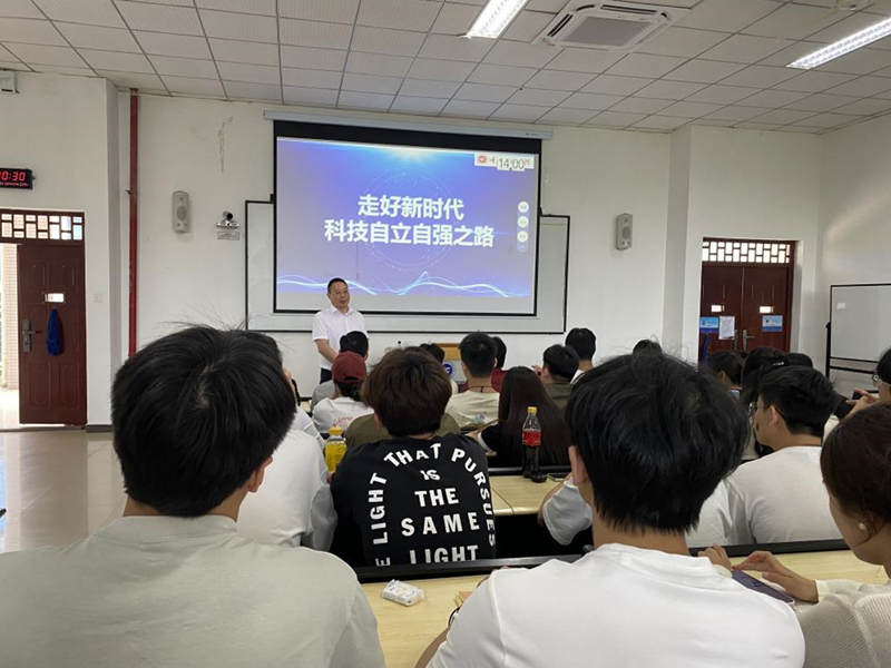 本网讯(文/图 马克思主义学院 郑金丽)为深入学习贯彻党的二十大精神,第一时间推动党的理论创新成果进教材进课堂进学生头脑,5月31日副校长谭明术走进形势与政策课堂,为21级工造5班、21级环设5班以及21级数媒技1班讲授“走好新时代科技自立自强之路”专题课程。