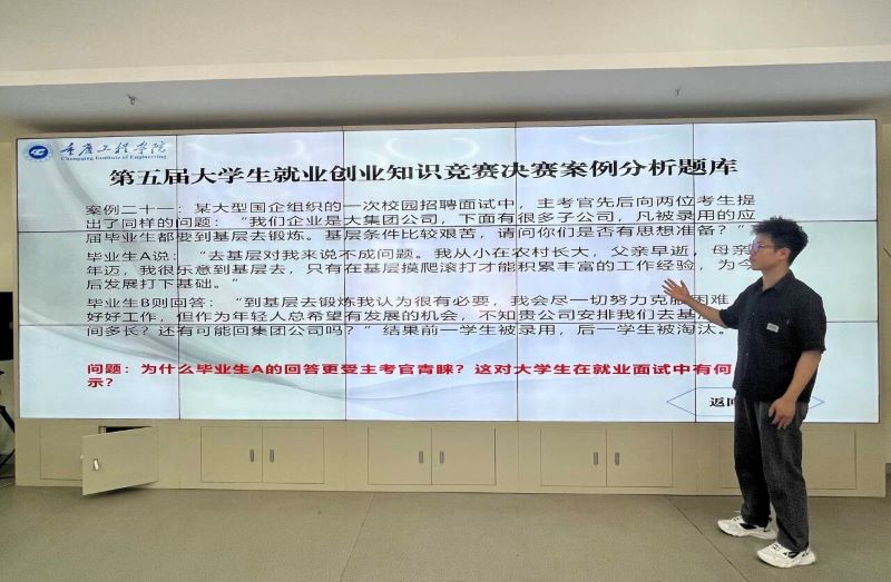 本次大赛以“掌握就创知识,赋能美好未来”为主题,旨在考察参赛学生对国家及重庆市就业创业项目及政策的掌握和运用情况。经过初赛、复赛的激烈角逐,共有18名选手脱颖而出,成功晋级决赛。决赛设置了职业能力展示和案例分析两个环节。在职业能力展示环节,选手们在3分钟时间内展示自己的职业目标、专业能力和综合素质。在案例分析环节,选手们随机抽取题目,在3分钟内根据题目要求给出答案。评委们根据选手们的表现进行了综合评分。