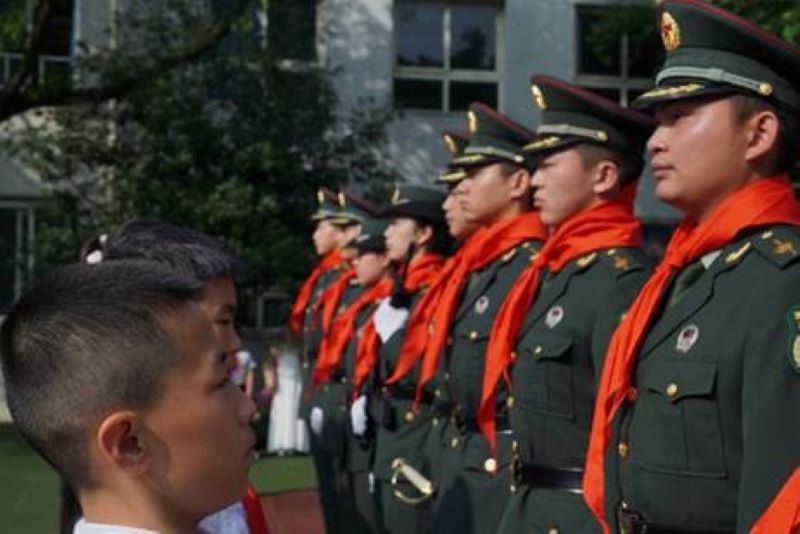 上午9点半,在升国旗仪式上,国旗护卫队的哥哥、姐姐们身着常服,手握礼兵枪,目光坚定,迈着整齐的步伐走向升旗台,少先队员们的目光紧紧跟随。庄严的《中华人民共和国国歌》响起,擎旗手振臂一挥,划出一道漂亮的弧线,鲜艳的五星红旗冉冉上升,全体师生向国旗敬礼、高唱国歌,爱党、爱国之情激荡在全体师生的心中。紧接着小学生们为我校国护队员们戴上了鲜艳的红领巾。