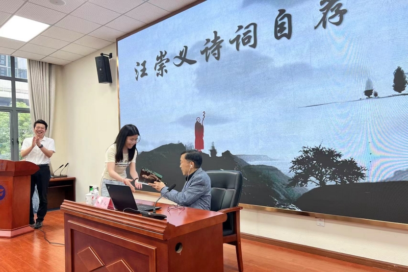 在聆听了汪崇义先生精彩的讲座后,王万均表示,诗词不仅丰富了我们的精神世界,更是传承和弘扬中华优秀传统文化的重要途径。他对在场的师生提出三点希望,一是希望师生们能够深刻领悟诗词的韵味与内涵,将诗词作为心灵的滋养,让中华优秀传统文化的精髓浸润我们的精神世界,提升个人的文化修养和道德情操。二是希望师生们能够积极投身于诗词的创作与传播之中,通过诗词来表达自己的情感与思考,让更多的人感受到诗词的魅力和力量,共同推动中华诗词文化的传承与发展。三是希望师生们能够在日常生活中践行诗词中的智慧与哲理,将诗词中的美好品质与价值观念融入到自己的生活实践中,成为具有高尚品格和人文情怀的新时代青年。