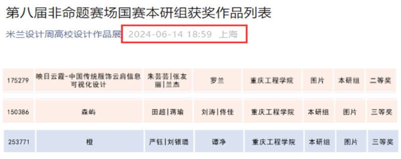 本网讯(文/图 数字艺术学院 刘涛)近日,由中国教育国际交流协会、中国高等教育学会主办的第八届米兰设计周-中国高校设计学科师生优秀作品展国赛及各省赛评审工作圆满结束。我校数字艺术学院师生作品在本次大赛中获得多项国家级、省级奖项。