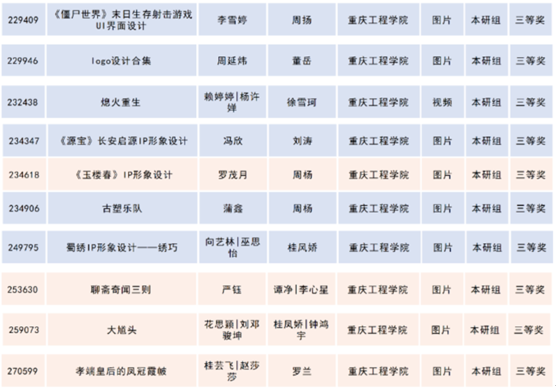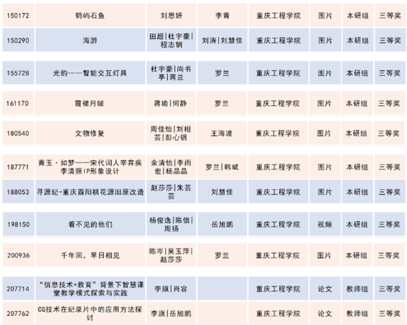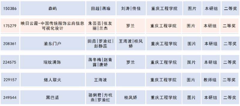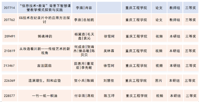 重庆赛区学院师生获奖名单: