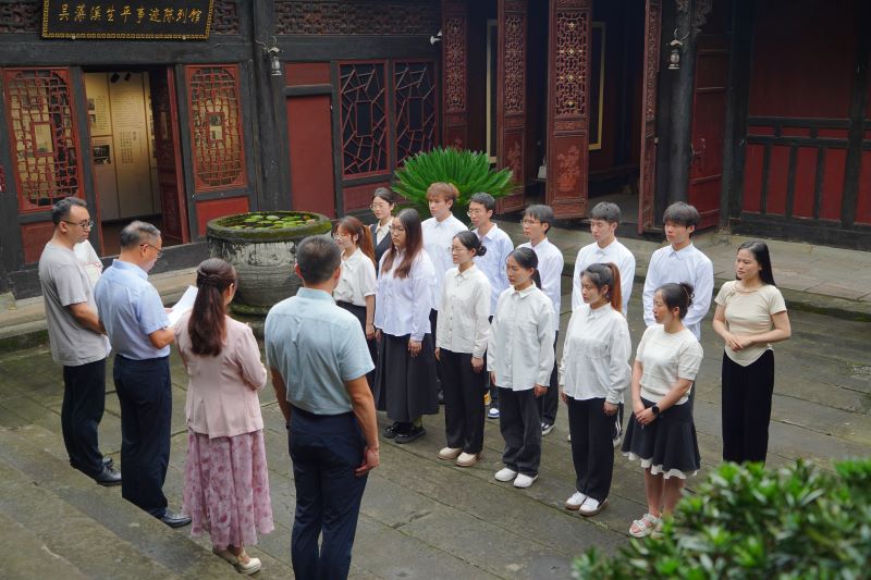 本网讯(文/党委统战部 文列焰 图/大学生记者团)为深入学习宣传贯彻党的二十大精神,深入学习贯彻习近平总书记关于做好新时代党的统一战线工作的重要思想,进一步加强学校统一战线工作,积极探索统一战线知识纳入师生教育内容的有效路径,按照学校党委总体部署,学校党委统战部于6月19日下午在彭氏民居举行了“重庆工程学院大学生党员同心宣讲团”成立仪式。九三学社重庆市巴南区工委专职副主委姚小娟,学校党委委员、党委统战部部长蒋国华,大数据与人工智能学院党总支副书记宁俊龙,指导教师王惠俊、刘雪梅以及宣讲团首批成员参加活动。