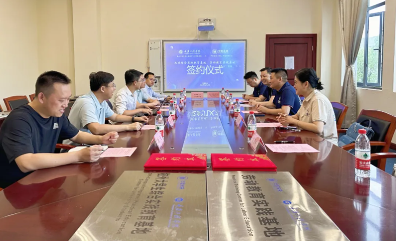 本网讯(文/图 大数据与人工智能学院 宁俊龙、杨孟凡)为进一步做好学院实习实训基地群建设,提升“校企合作、产教融合”工作质效,6月19日,大数据与人工智能学院成功牵手华智未来(重庆)科技有限公司,并在行政楼207会议室举行签约授牌仪式。学院院长李钦、党总支副书记宁俊龙、副院长廖宁、副院长吴平、就业科科长敬夫,华智未来(重庆)科技有限公司总经理曾强、项目总监王友平、品牌总监张婧出席签约仪式。
