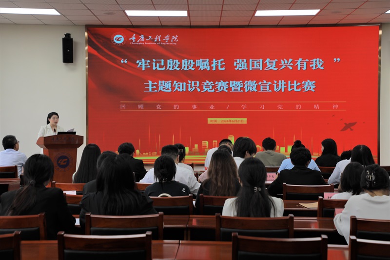 本网讯(文/大学生记者团 樊玉婷 图/大学生记者团 姜欣怡)为隆重庆祝中华人民共和国成立75周年,促进重工师生深入系统学习习近平新时代中国特色社会主义思想和党的二十大精神,贯彻落实总书记重要讲话重要指示精神,按照市委宣传部、市委教育工委有关工作安排,经各二级学院前期初赛选拔,6月21日下午,我校在行政楼201举行“牢记殷殷嘱托,强国复兴有我”主题知识竞赛暨微宣讲比赛决赛。共有九支队伍进入决赛,双桥校区线上同步参与。