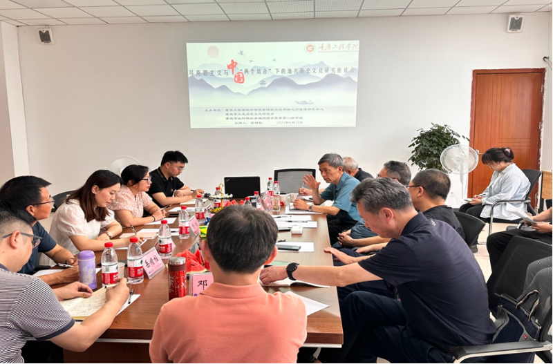 下午,研究团队返回我校(双桥校区),由研究中心主任岳精柱主持召开了“马克思主义与中国‘两个结合’下的地方历史文化研究座谈会”。各位专家围绕马克思主义与中国传统文化的结合、地方历史文化的保护与传承等议题进行了深入研讨。副校长杨桂出席座谈会。