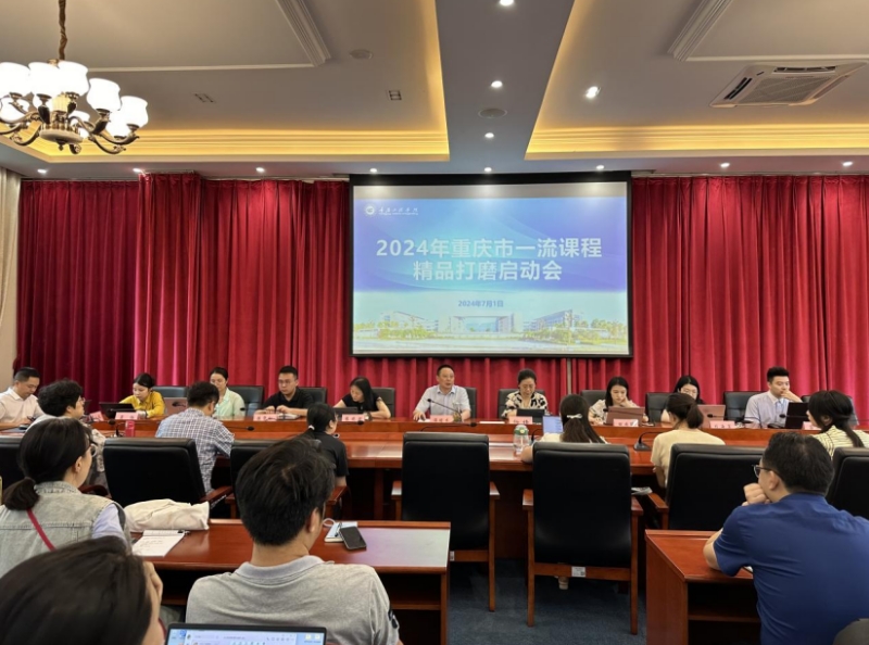 本网讯(文/图 教务处 罗蓓蓓)为了打造一批具有高阶性、创新性和挑战度的重庆市及以上一流本科课程,提升2024年重庆市一流课程申报质量,我校于7月1日上午在行政楼206会议室召开一流本科课程建设与申报工作推进会。副校长谭明术出席,教务处及教师发展中心相关负责人、超星、智慧树、昭信课程顾问、二级学院教学副院长、一流课程申报负责人等参加本次会议。会议由教务处副处长周小波主持。