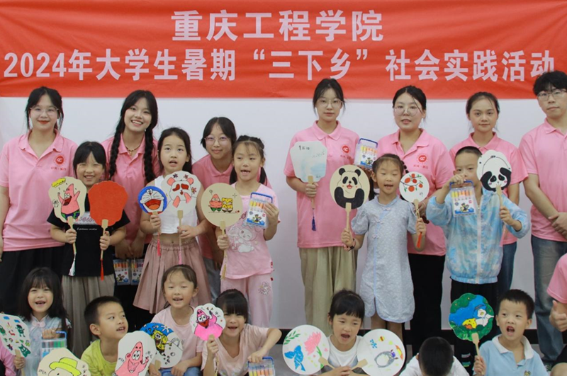 为加强对留守儿童的关爱,团队在重庆市巴南区姜家镇姜家社区开展儿童绘画活动,指导孩子们绘画,向他们赠送团扇、水彩笔。志愿者们与孩子们共同协作,在轻松愉快的氛围中展开绘画,现场活动氛围融洽。本次绘画活动在给留守儿童带去快乐的同时,也丰富了他们的艺术活动,为乡村社区小学美育教育的发展贡献了青年学子的青春力量。