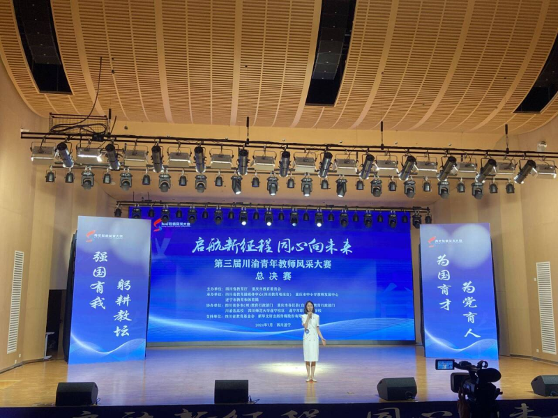 本网讯(文/图 教师发展中心 罗鼎元)7月16日—19日,以“启航新征程,同心向未来”为主题的第三届川渝青年教师风采大赛总决赛在遂宁隆重举行。来自川渝两地120名青年教师现场竞技,我校参赛教师孙美晨荣获高校组一等奖。