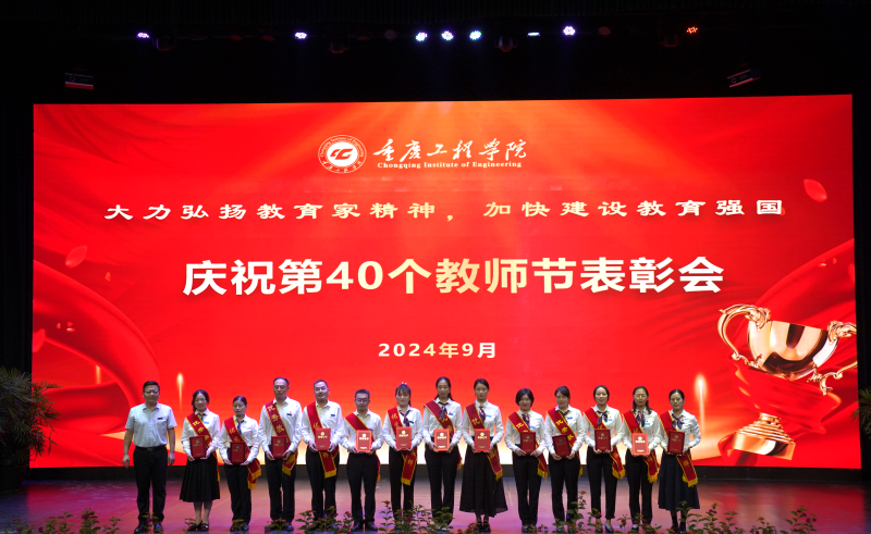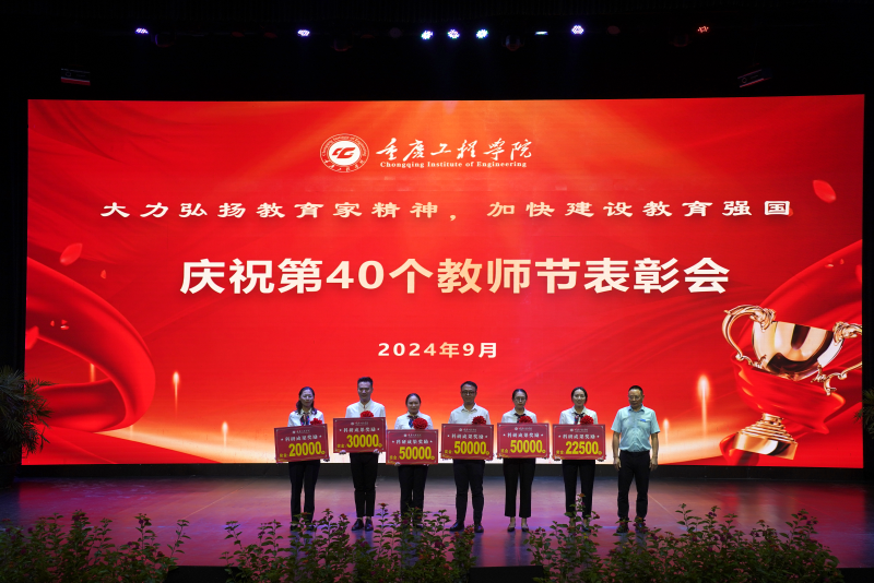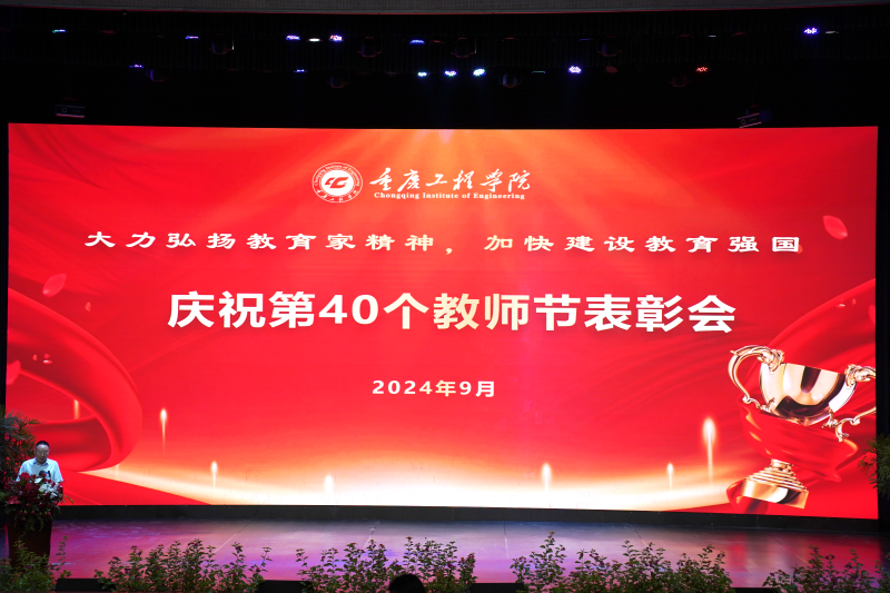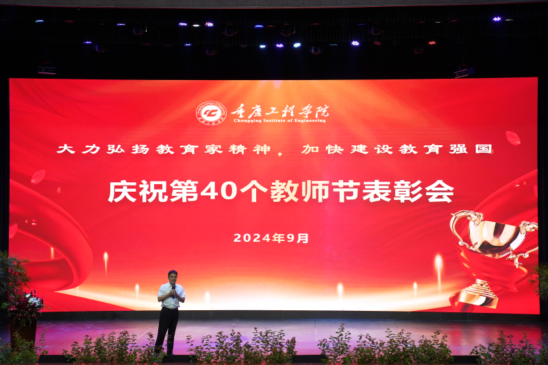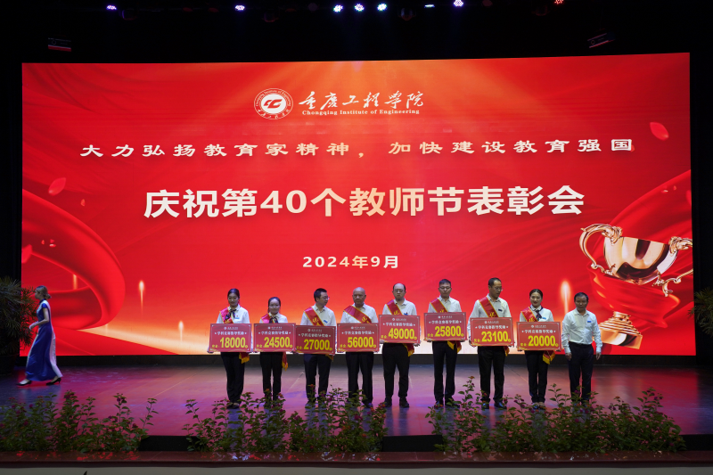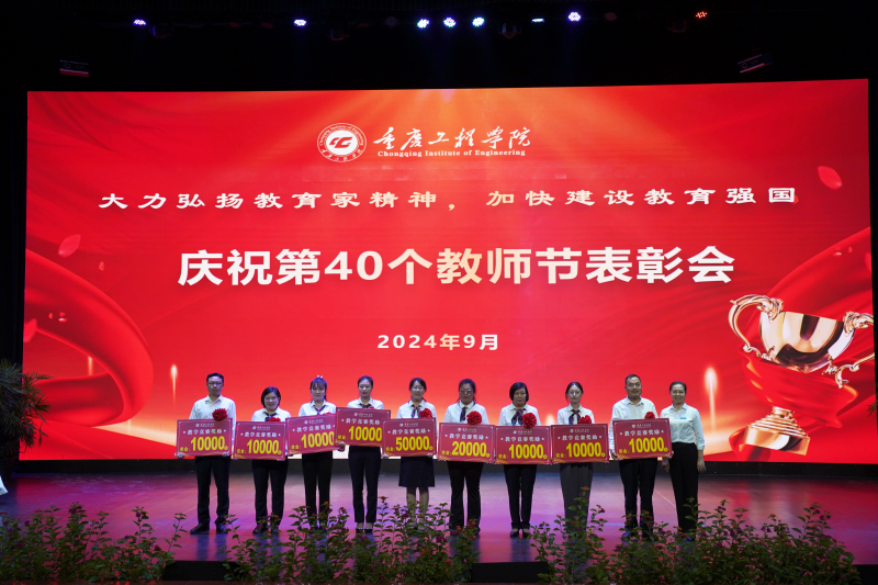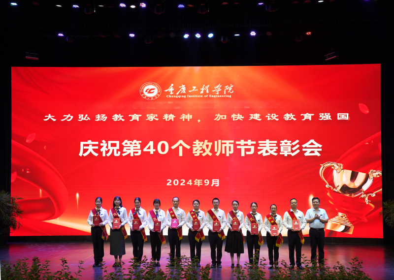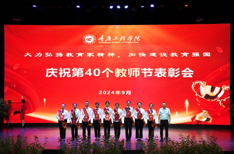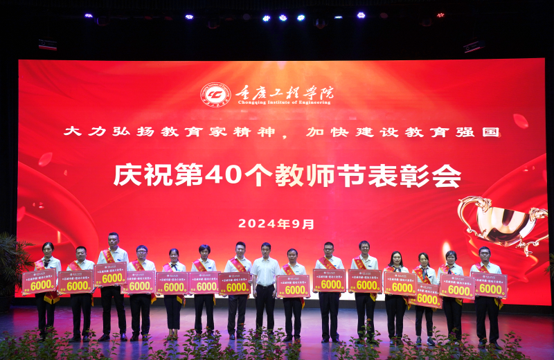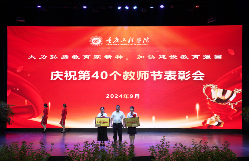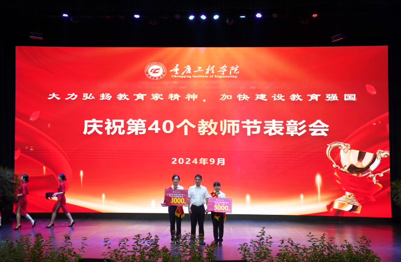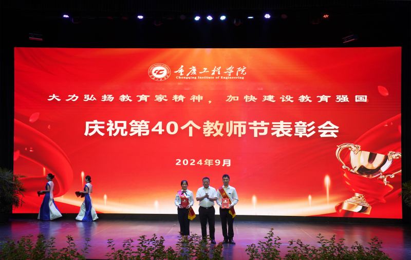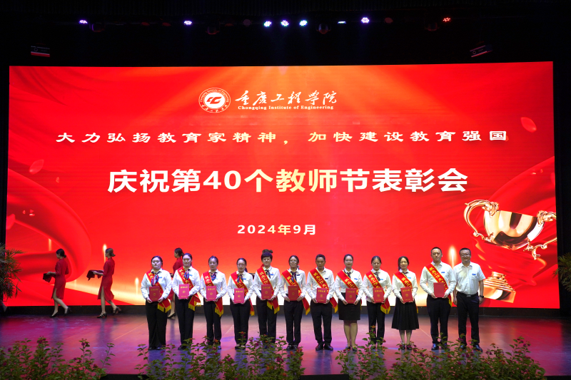 伴随着雄浑有力的国歌声响起,大会拉开帷幕。2024年,重庆工程学院涌现出一批又一批在各自的岗位上扎实工作,崇德修身,潜心育人,追求卓越,甘于奉献的老师,他们以实际行动践行教育家精神,伴随着催人奋进的音乐声,老师们踏步走上舞台,学校领导为获奖教师代表颁发荣誉证书。