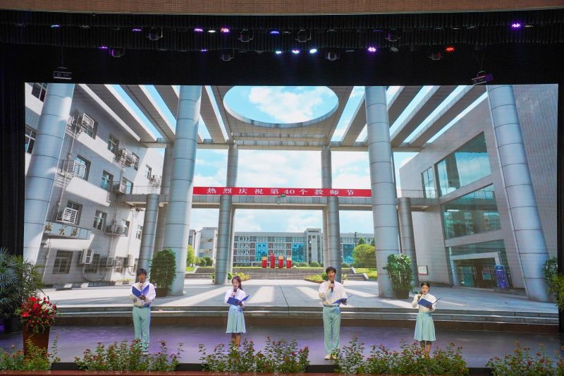 学生代表登台献词《以爱之名,感恩老师》,用深情的诗朗诵表达了对老师们真挚的感恩之情。