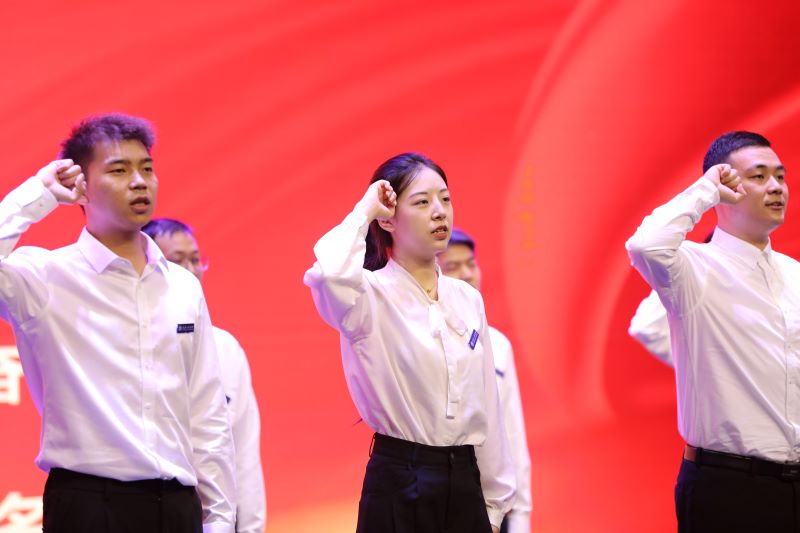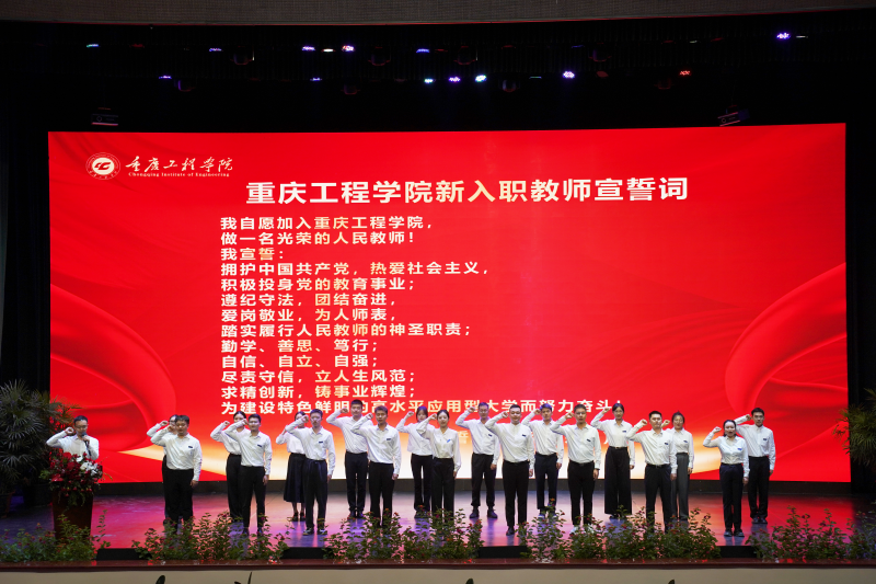 随后,2024年新进教职工代表集体宣誓,表达努力成长为“四有好老师”,为建设特色鲜明的高水平应用型大学,为培养德智体美劳全面发展的社会主义建设者和接班人接续奋斗的决心。