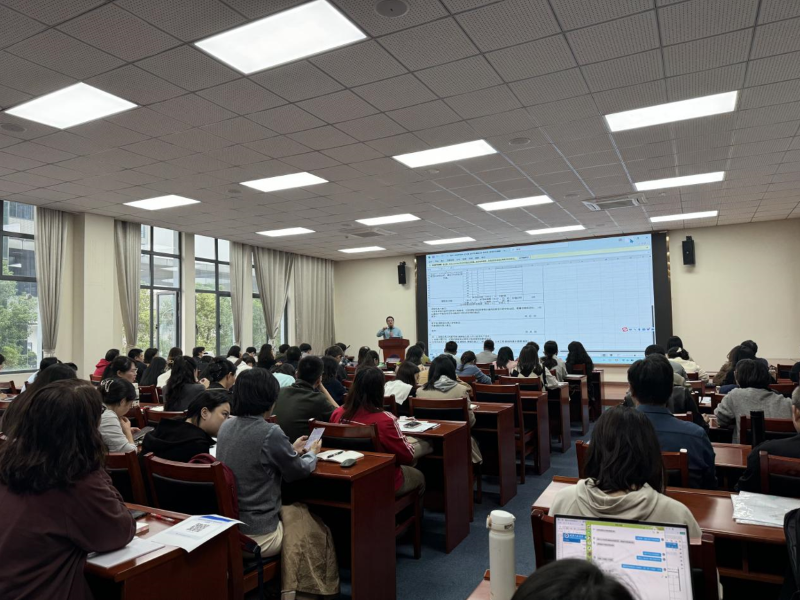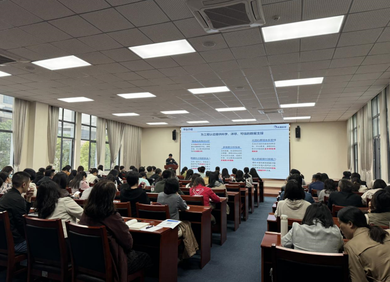 技术人员主要围绕系统中课程目标设定、课程考核环节及权重设置、成绩录入以及课程目标的达成度分析进行了详细讲解。通过相关课程的实际演练,细致介绍了课程目标达成度的分析过程及操作步骤,以及多维度的数据可视化呈现形式。汪金能从课程目标达成度评价的目的、意义、计算原理、计算方法、在线撰写评价报告要求等方面做了补充,并强调各教学单位必须认真完成课程大纲修订,尤其是课程教学大纲中涉及课程目标、教学内容、教学方法与手段、考核环节与方式及评分标准等,这些内容都是支撑课程目标达成的关键内容。