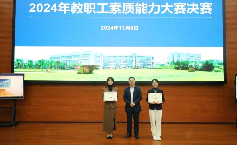 决赛形式为模拟实战,重点考察教职工的计划能力、组织能力、协调能力、沟通能力、表达能力、应变能力等具体业务工作能力。决赛分必答题、抢答题和情景题三个环节,比拼中老师们全情投入,呈现出优秀的专业素养。最终来自管理学院的朱凤老师荣获一等奖,来自建筑工程学院的毛云莹和新媒体电商学院的何荣双老师获得二等奖,来自计算机与物联网学院的魏登雪、数字艺术学院的李毅和教务处的卢小群老师获得三等奖。陈长虹、张业平和谭明术分别为获得奖项的老师颁奖。