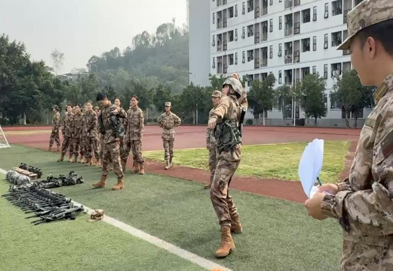 本网讯(文/图 党委武装部)11月10日,国旗护卫队体能考核在运动场火热开展,队员们以饱满的精神和昂扬的斗志迎接挑战,尽显护卫国旗的坚定决心与卓越风采。考核内容涵盖了多项军事技能的综合测试,包括战术、手雷投掷(模拟)、团体跳绳、定向越野等项目,旨在全面检验队员们的身体素质与军事技能水平。
