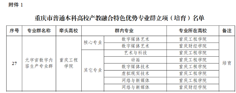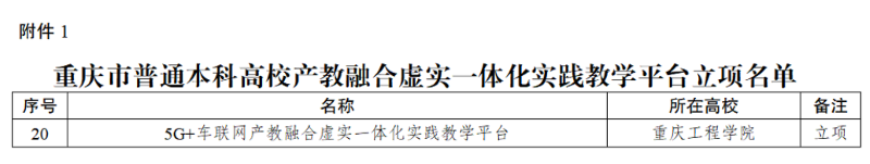 2024年7月,“元宇宙数字内容生产专业群”成功立项为重庆市普通本科高校产教融合特色优势专业群(渝教高发〔2024〕6号);“5G+车联网产教融合虚实一体化实践教学平台”成功立项为重庆市普通本科高校产教融合虚实一体化实践教学平台(〔2024〕8号),体现了我校在产教融合方面取得的重要成果。