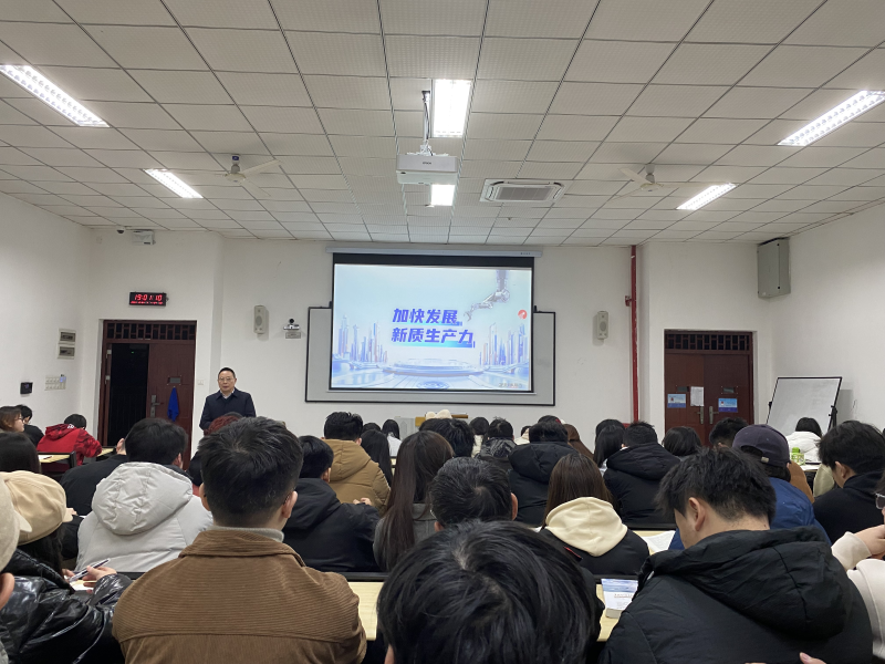 课堂中,谭明术通过鲜活的案例、科学的数据、富有感染力的图片和视频开展教学,不断引发同学们思考和讨论。他指出,坚定不移加快发展新质生产力,是推进中国式现代化的必然选择。同学们要密切关注新质生产力的发展趋势,了解专业前沿领域发展动态,主动融入这一发展浪潮,思考自身定位,促进自身综合素养的全面提升。