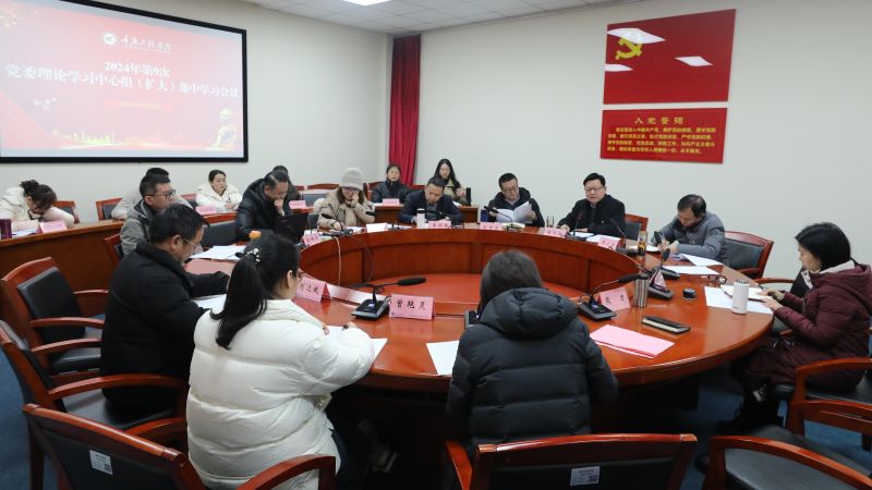 本网讯(文/图 党委宣传部)12月20日,学校在南泉校区召开2024年第9次党委理论学习中心组(扩大)集中学习会议,深入学习袁家军在全市教育大会上的讲话精神。全体中心组成员、相关职能部门负责人、党总支负责人和专职组织员参加会议。会议由党委书记陈长虹主持。