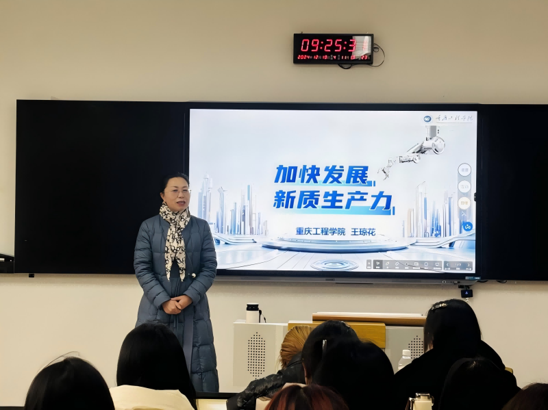 本网讯(文/图 马克思主义学院 吴臻)12月19日上午,副校长王琼花在南泉校区第六教学楼为23级电商1班的同学们带来了一场别开生面的“形势与政策”课。本次课程的专题聚焦于“新质生产力”,旨在帮助同学们深入理解新时代背景下的生产力变革与发展趋势。