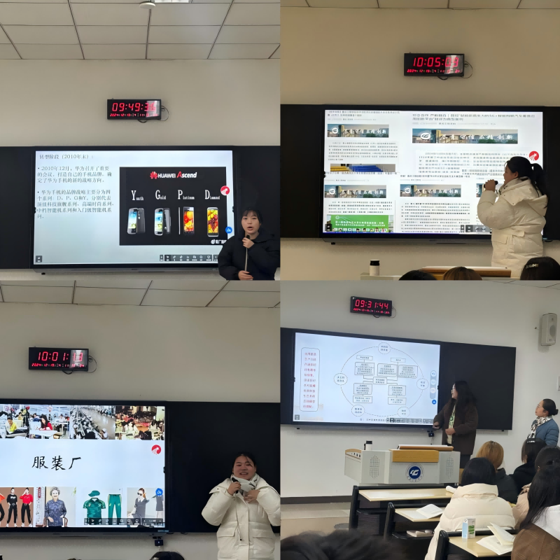 课程的最后环节,同学们进行了小切口诠释新质生产力的分组讨论成果展示。他们分别以新能源汽车小米SU7、华为手机、服装厂变化等为例,深入剖析了新质生产力在不同领域的应用与影响。同学们的发言精彩纷呈,充分展示了他们对新质生产力的深入理解和独到见解。