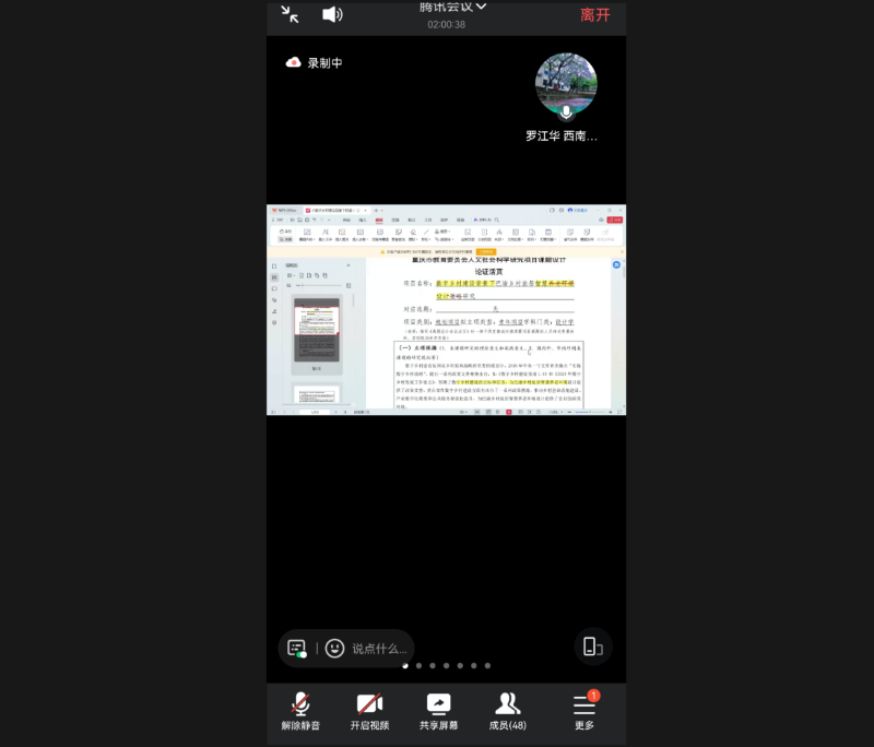 本网讯(文/图 科技处 李世毅)为进一步提升人文社科类科研项目申报质量水平,1月24日晚,学校邀请西南大学博士生导师罗江华进行本年度教委人文社科科研项目申报线上专题培训。2025年教委人文社科项目申报人、人文社科类科研骨干共50余人参加培训。