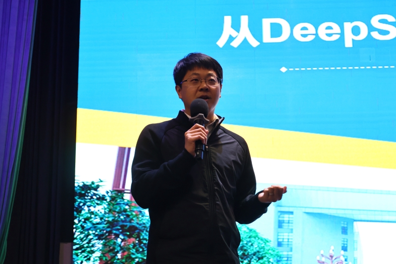李钦分享了四个篇章,包括DeepSeek的发展历程与运行机制,人工智能在高等教育领域影响及对未来发展的挑战;深入探讨了DeepSeek的技术框架、AI对高等教育的变革作用,以及我校在人工智能应用研究中的积极探索。