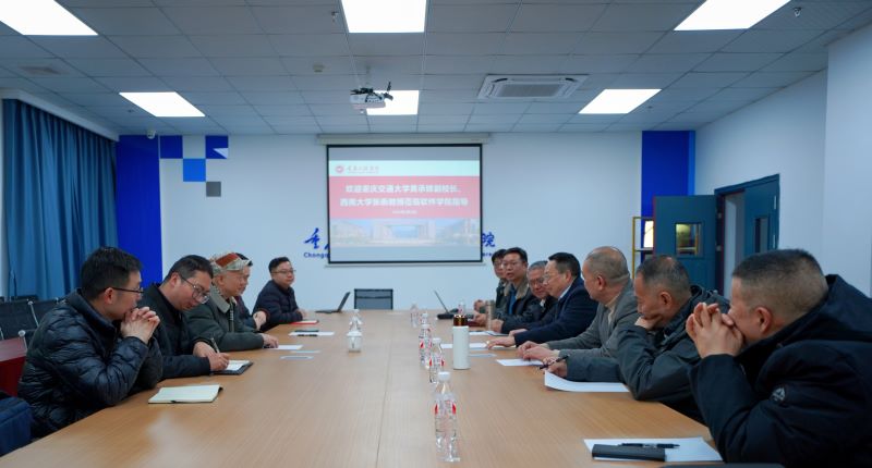本网讯(文/图 软件学院 唐浩坤)为深化校际合作、推动产学研深度融合,3月3日,重庆交通大学副校长黄承锋教授率科研团队与西南大学计算机与信息科学学院教授张衡一行赴我校软件学院考察交流。重庆工程学院副校长谭明术出席会议,软件学院院长周龙福、副院长唐浩坤、虚拟仿真研发中心主任刘啸天,昭信教育集团副总裁杨洁、顾问林康、徐刚教授共同参会。双方围绕科研课题申报、商业项目协作及联合人才培养展开深入探讨。