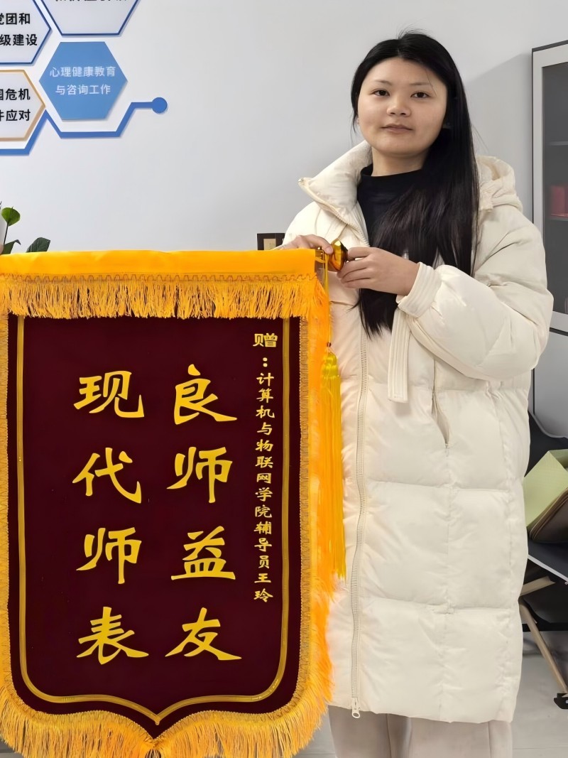 本网讯(文/图 计算机与物联网学院 魏登雪)近日,计算机与物联网学院辅导员办公室发生了一幕温馨感人的场景,学生家长将一面写有“良师益友,现代师表”的锦旗送到该生辅导员王玲老师手里,以此表达对学校、学院及辅导员长期以来对其孩子深情关怀和无私帮助的深深谢意。